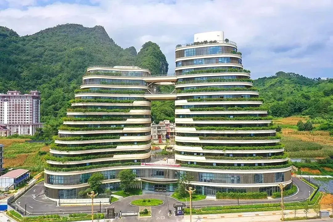 以巴马科技创新中心项目为例,该项目要求 EPC,大宸设计集团与施工方联合体中标并已落成投入使用。设计理念体现巴马在地文化,包括长寿主题、生态自然以及对口扶贫城市的项目性质。造型元素来源于太极、巴马的山形和梯田,双塔中间连廊体现共赢理念,整体建筑为第四代建筑,做空中绿化,室内外设计风格统一,以绿色色调为主且简约。项目配套空中餐厅,已对外开放成为当地打卡点。在建设过程中,针对拆迁问题,提出先建一栋减轻成本、树立形象的建议。同时,在前期对土建、装修、景观、智能化等全方位统筹,控制成本。该项目是全产业链服务理念落地的典型案例,施工难度和设计难度虽大,但通过 BIM 设计与施工无缝连接,现场问题少,顺利落地。