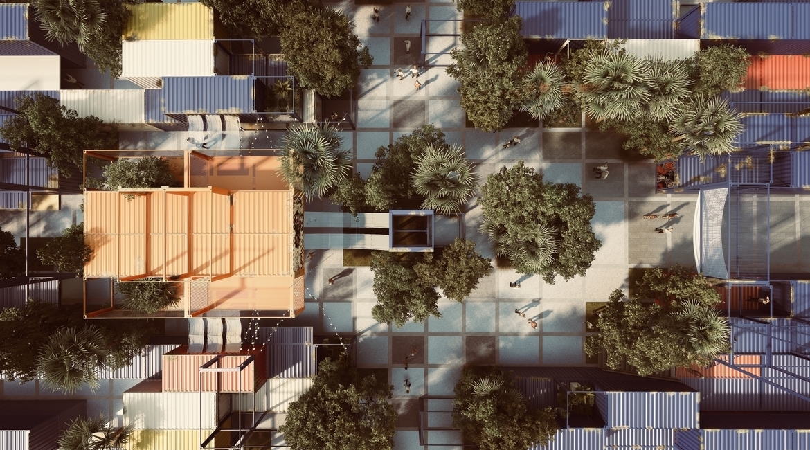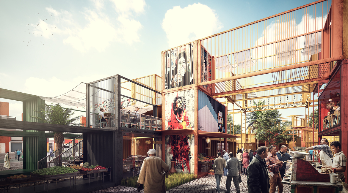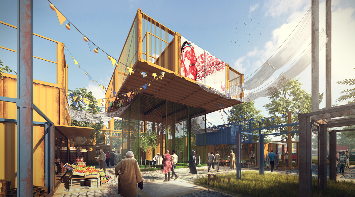 “家不是一个地点,而是一种氛围。人类与他们的故土存在着联系。在有着家庭和朋友的环境中成长滋养了人们内心并使他们的未来更有潜力。但因为饥荒、贫困、甚至政治因素被赶出家园会滋生动荡”建筑师如此说道,“每一分钟都有20个人变得流离失所,这使得建立一个可以应对快速变化的稳定社区颇具挑战。”“Sheltainer”着眼于非正式市场Souk Al Jumaa,它满足此地的居住区的每日需求。