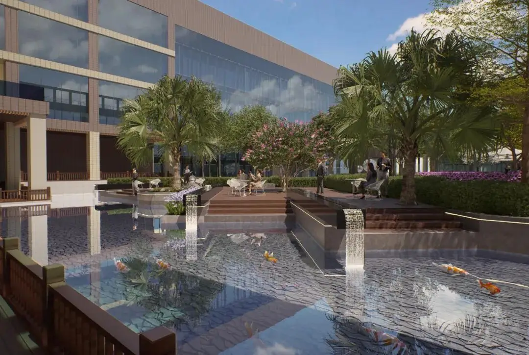 景观设计致力于打造来客可观可游、员工可憩可留的特色文化产业园区。办公闲暇或者午休时分,可以散步舒活一下筋骨;抑或来一场轻松的散步会议,为工作注入自然的活力。