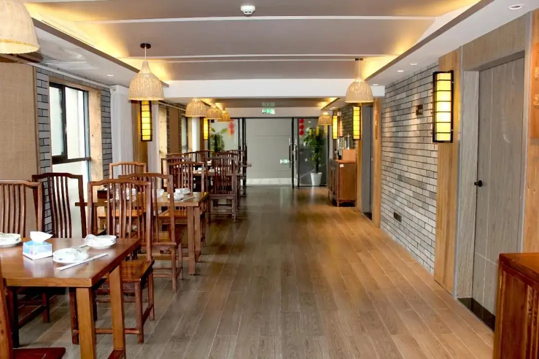 餐厅空间以水磨青砖、木饰面和布艺墙作为主要材料,设计尝试将自然肌理、匠人手工、现代科技三者相结合,寻求一种内心与视觉的双重享受,形成空间的序列感。并以古木船、草帽、渔具等元素点缀空间,回应了场域精神。
