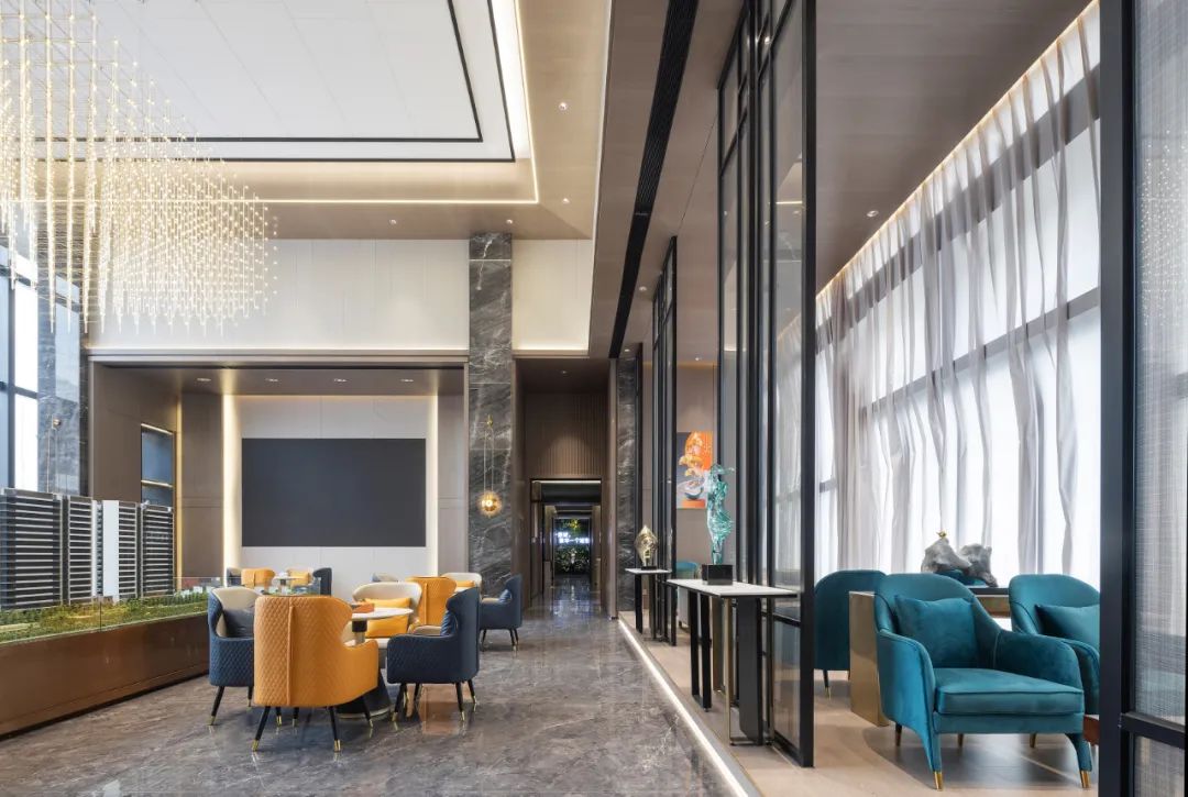 初入售楼部,空间的美学与艺术的张力碰撞出融洽的极致空间,投射着空间隐喻的高级感。阅读、商业、社交,多元的情境在此融合,设计师以空间导演的身份编排出丰富的生活场景,使艺术、人文、商业功能得以共同呈现。